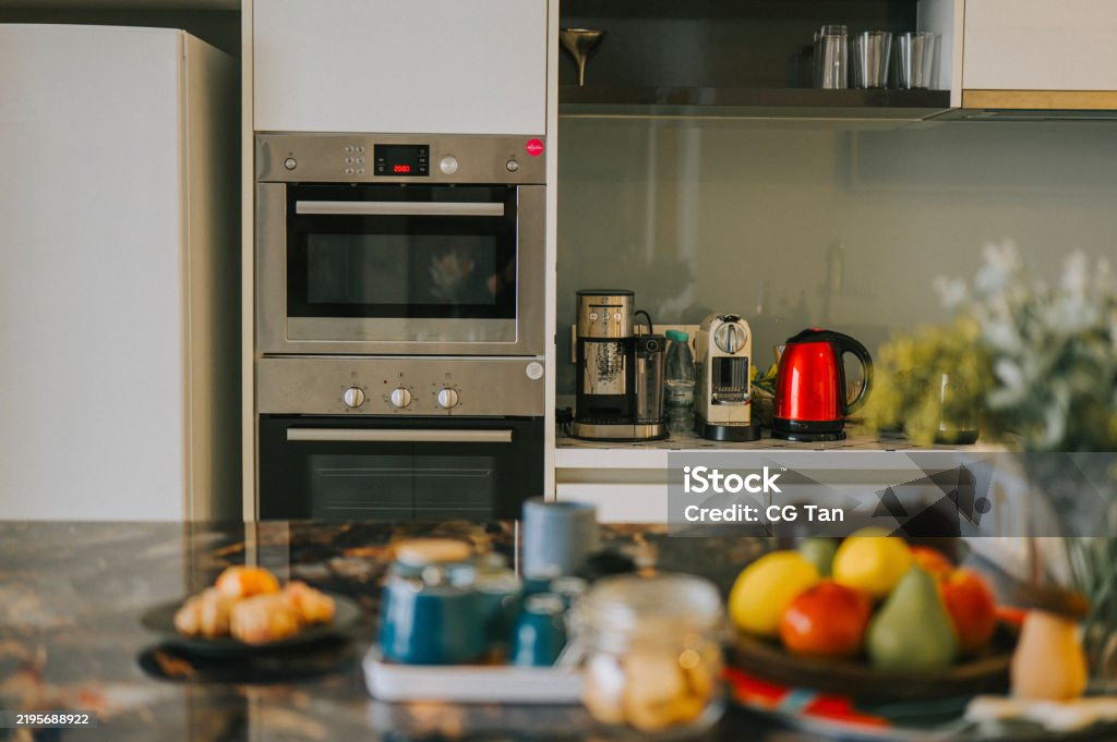 La cuisine est entièrement équipée et pensée pour allier fonctionnalité et modernité. Elle dispose d’un îlot central, offrant un espace de travail supplémentaire ainsi qu’un lieu convivial pour les repas rapides ou les moments de partage.